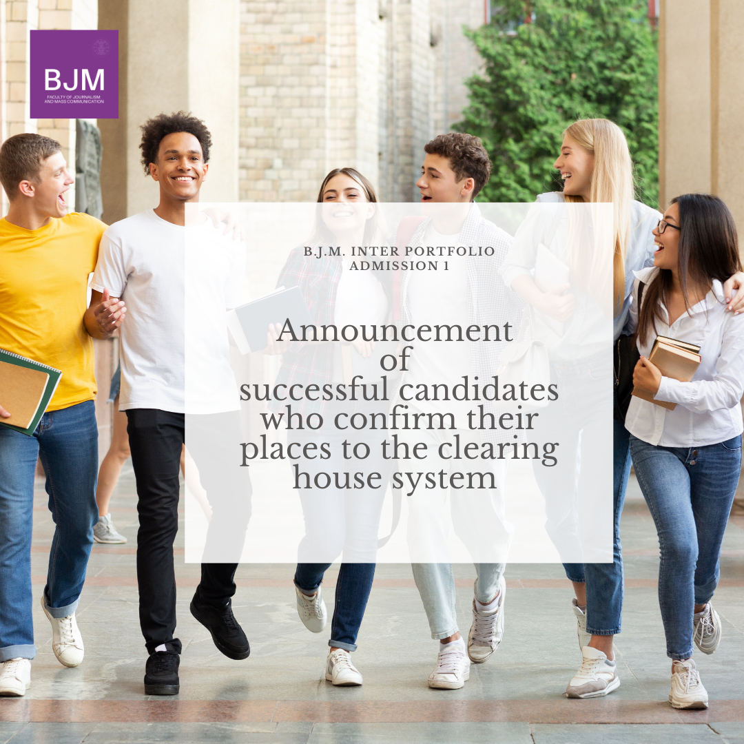 Announcement of successful candidates who confirm their places to the clearing house system for Inter Portfolio Admission 1 /2026 Admission